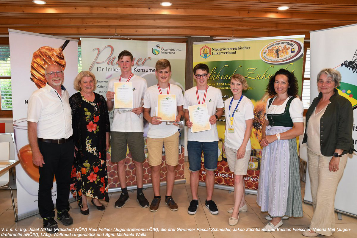 Die Siegerehrung wurde nicht nur von den Teilnehmer*innen mit unserem NÖIV-Präsidenten Ing. Josef Niklas tüchtig gefeiert, auch Landtagsabgeordnete Waltraud Ungersböck, Bürgermeisterin Michaela Walla und Jugendreferentin Rosi Fellner (Österreichischer Imkerbund) nahmen daran teil.